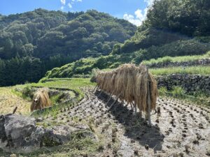 9月9日火曜日、棚田オーナーである柿木小学校の5年生による稲刈りが行われました。