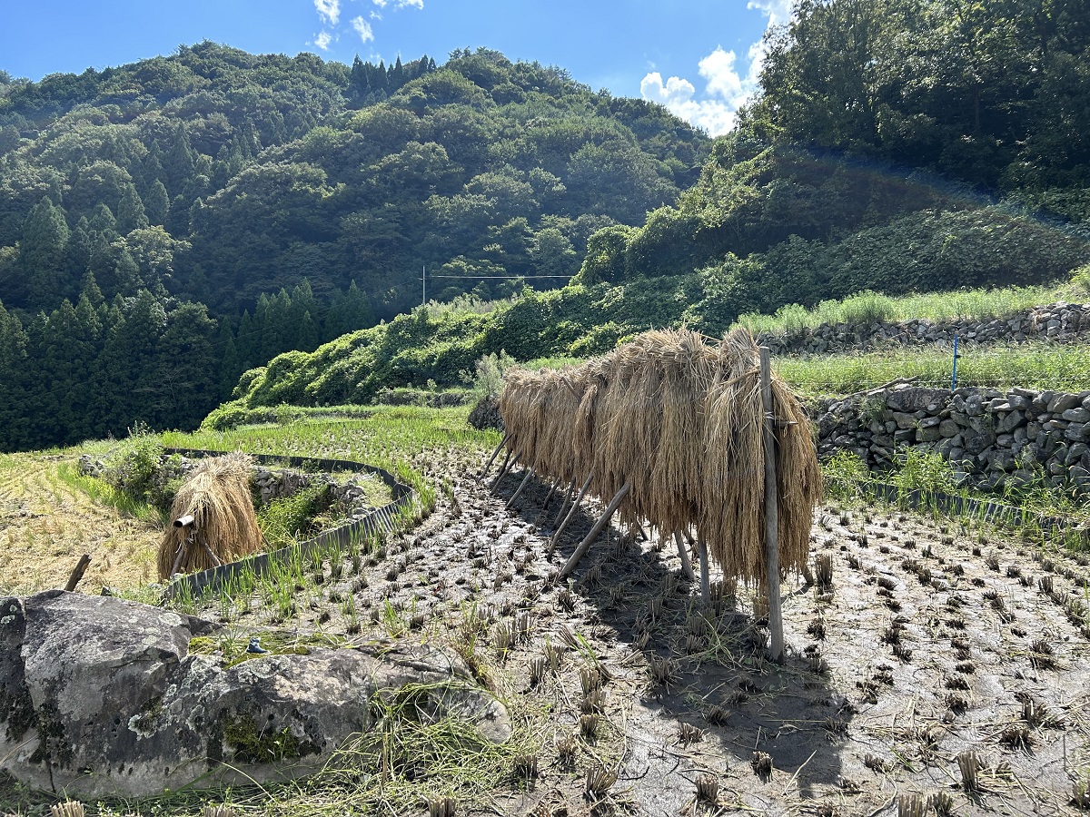 全国各地からお越しのオーナーのみなさんも手足を泥だらけにしながらせっせと穂を刈り・束ね・はぜへと干していらっしゃいました。初めての方は大汗かいて、長年通ってくださるご家族は慣れた手つきで各々作業されていました。