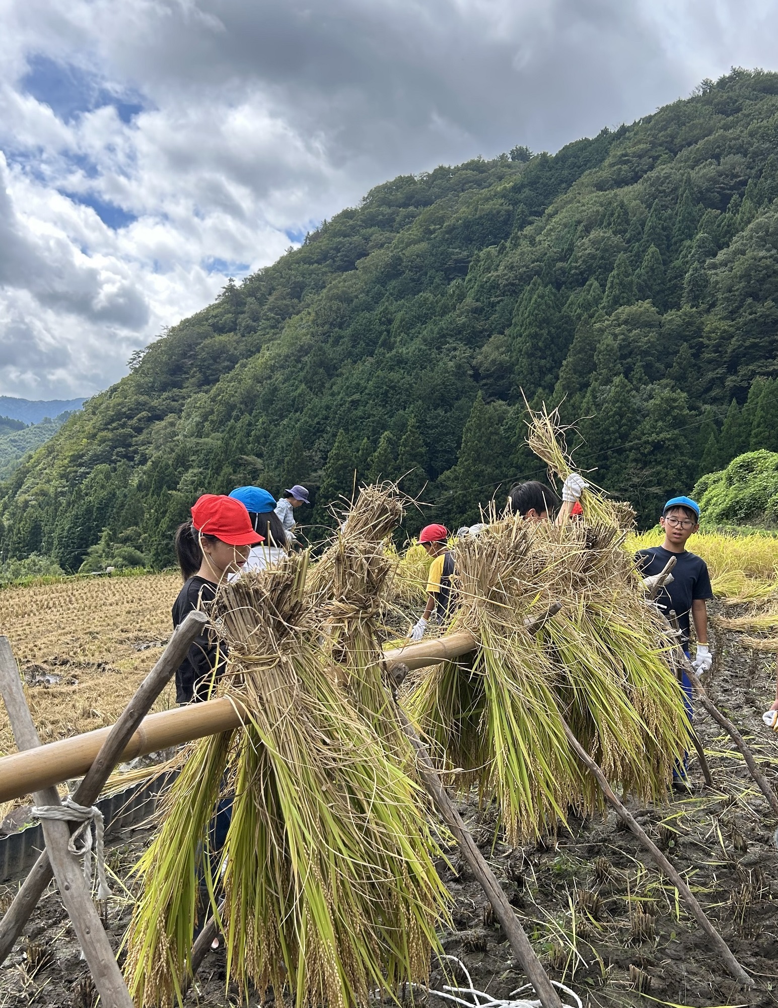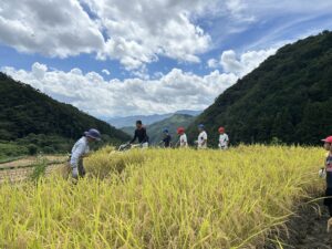 9月9日火曜日、棚田オーナーである柿木小学校の5年生による稲刈りが行われました。