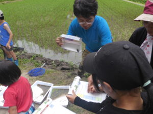 今回初めて田んぼに入ったり、生き物調査をした子どもも多かったのではないかと思いますが、生き物調査の面白さはもちろん、田んぼが育む生物多様性の豊かさ、自然環境や農業の大切さを心の片隅に感じてもらえたらいいなと思いました。