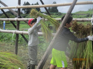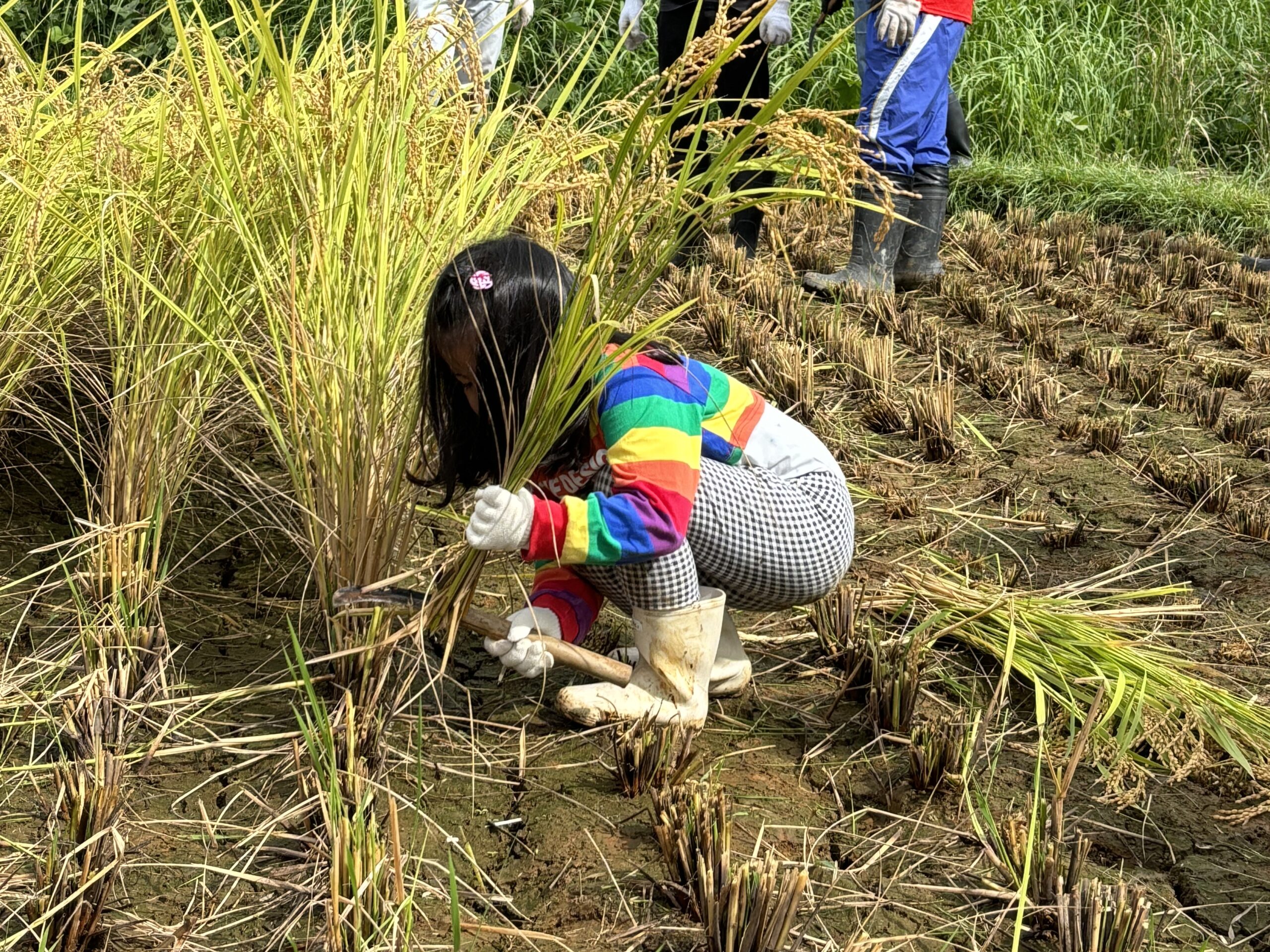 みんな、楽しみながらもくもくと稲刈りを行い、すべて刈り取りました!