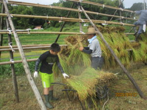 稲刈り開始直前に雨が降りましたが、その後天気が回復し、無事に収穫することが出来ました。